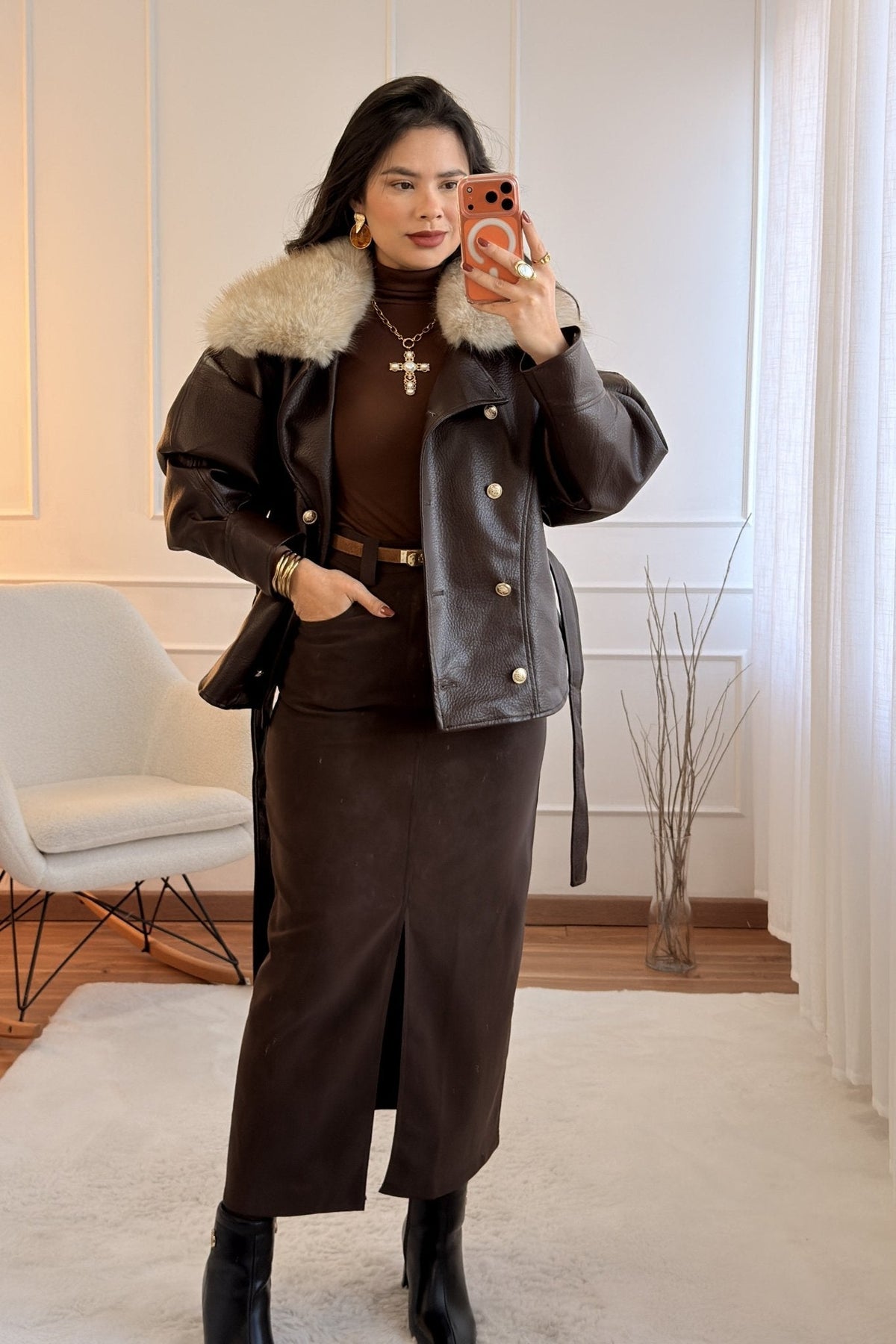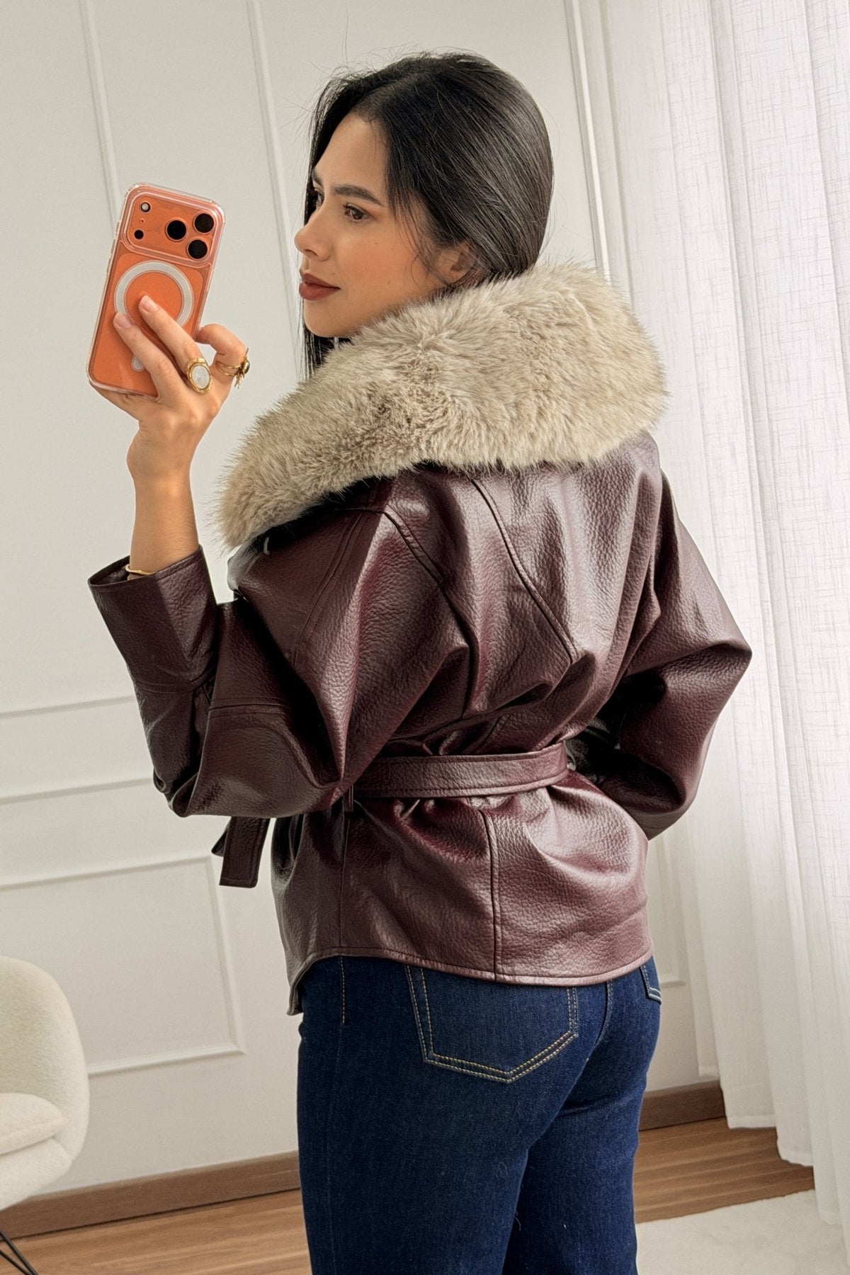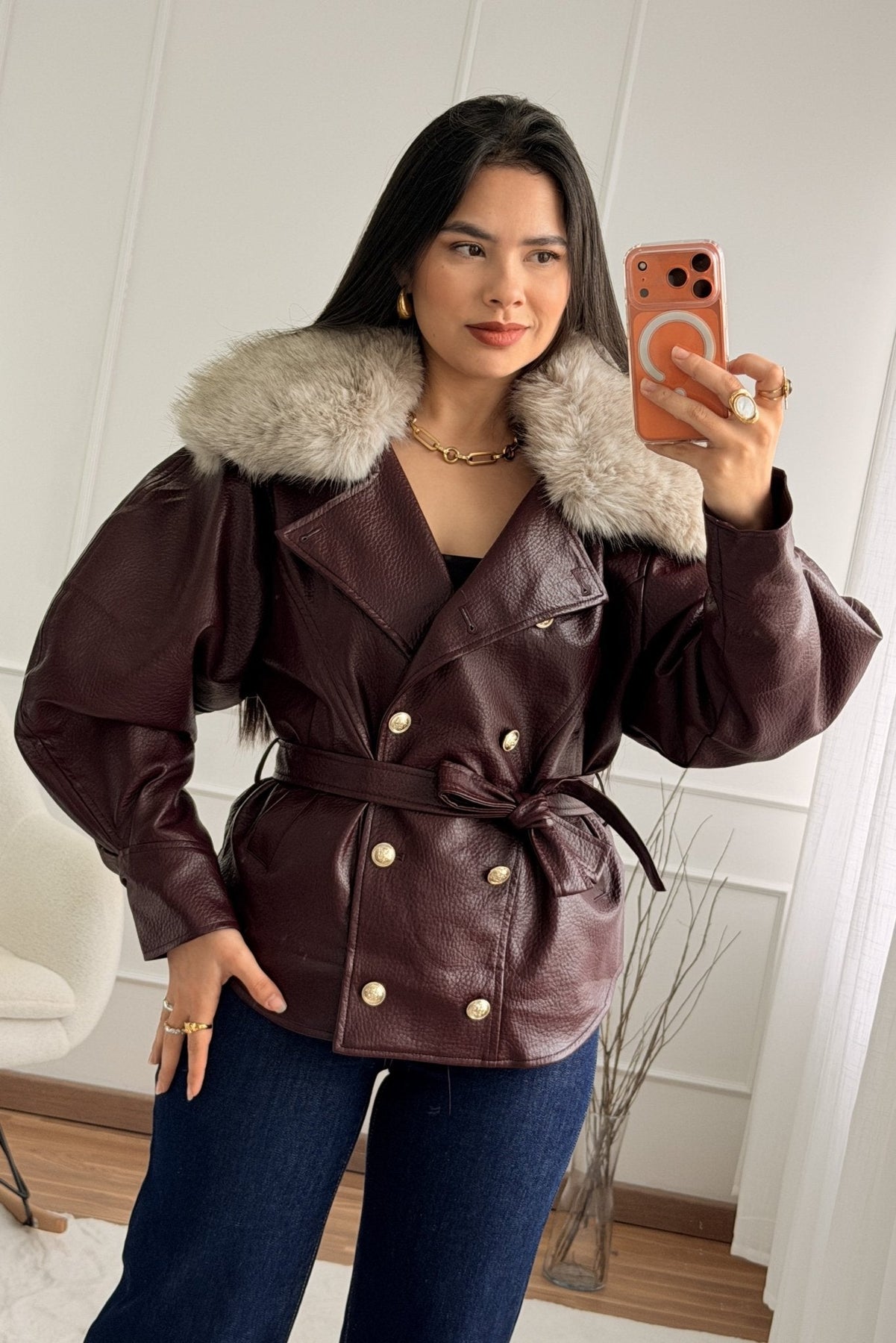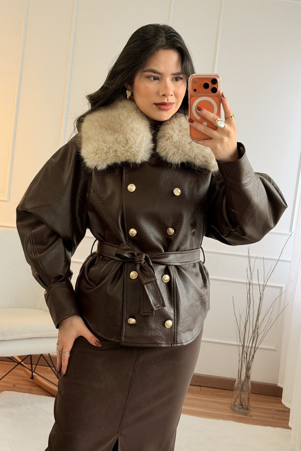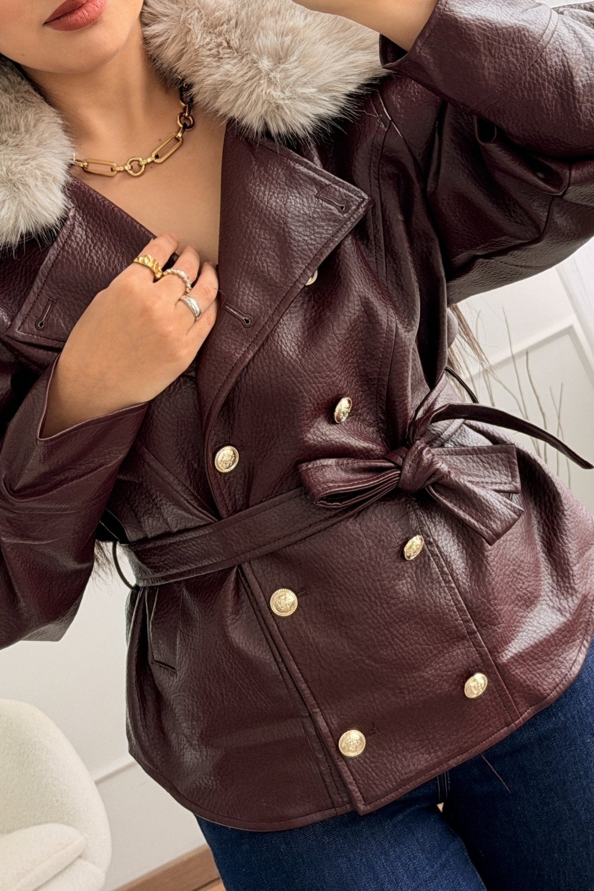 Kabát s kožešinovým límcem MOCHY