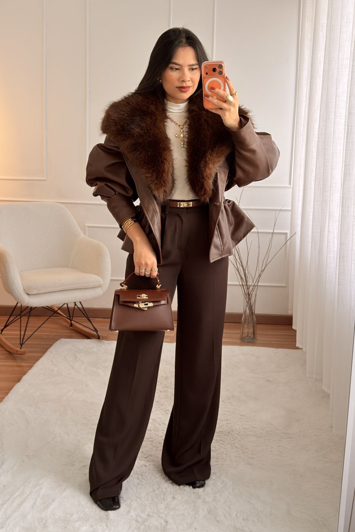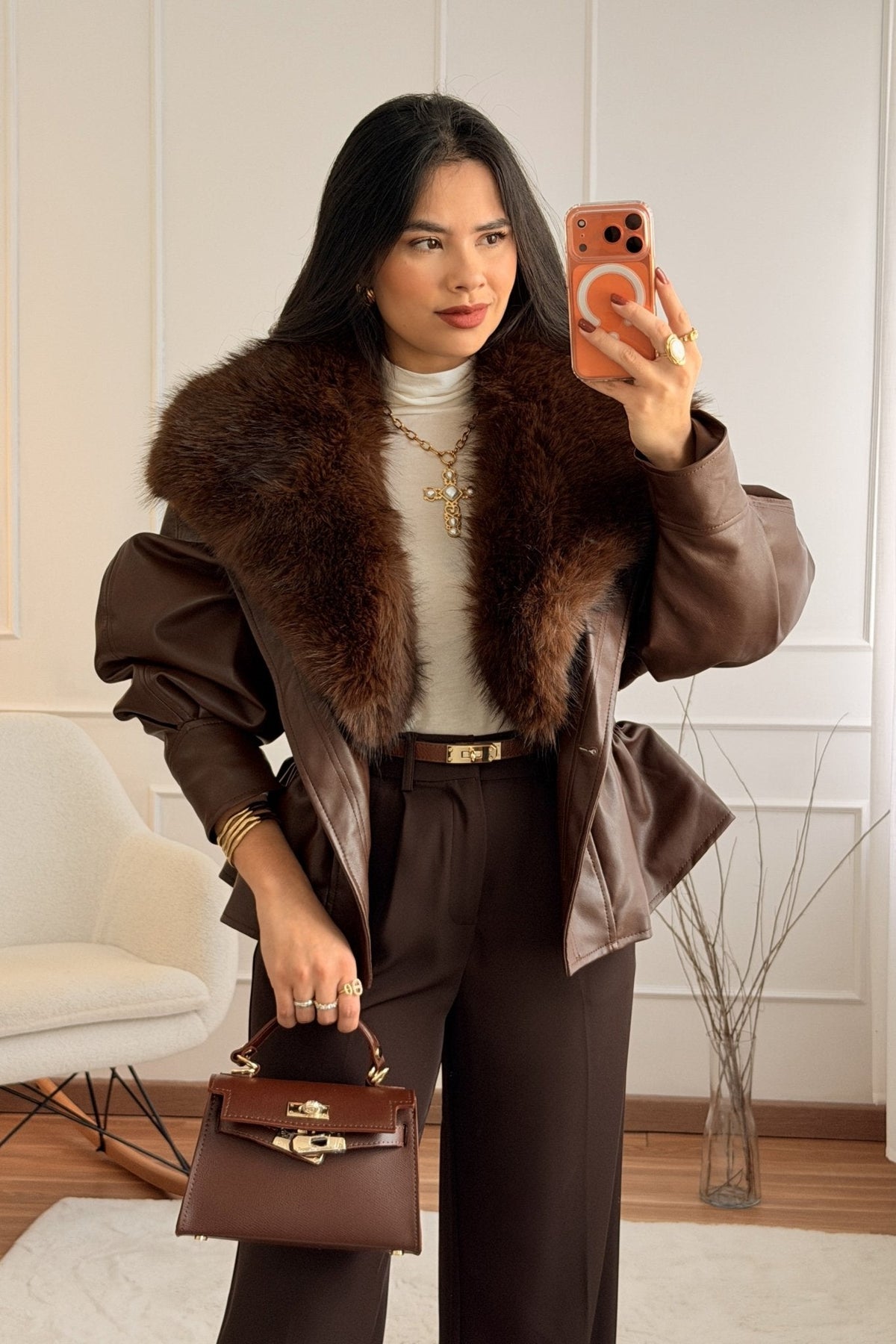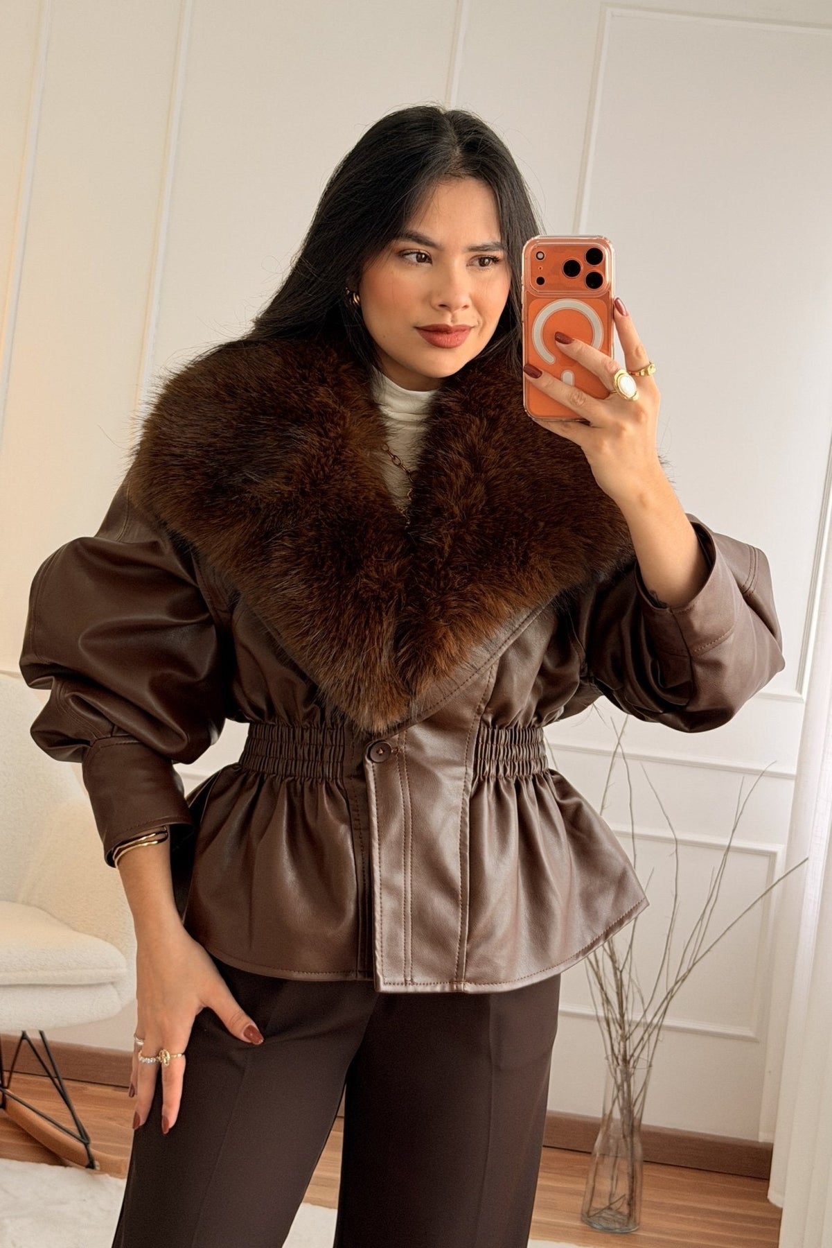 Kabát s umělým kožešinovým límcem MOCHY