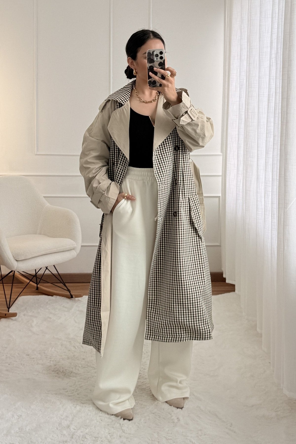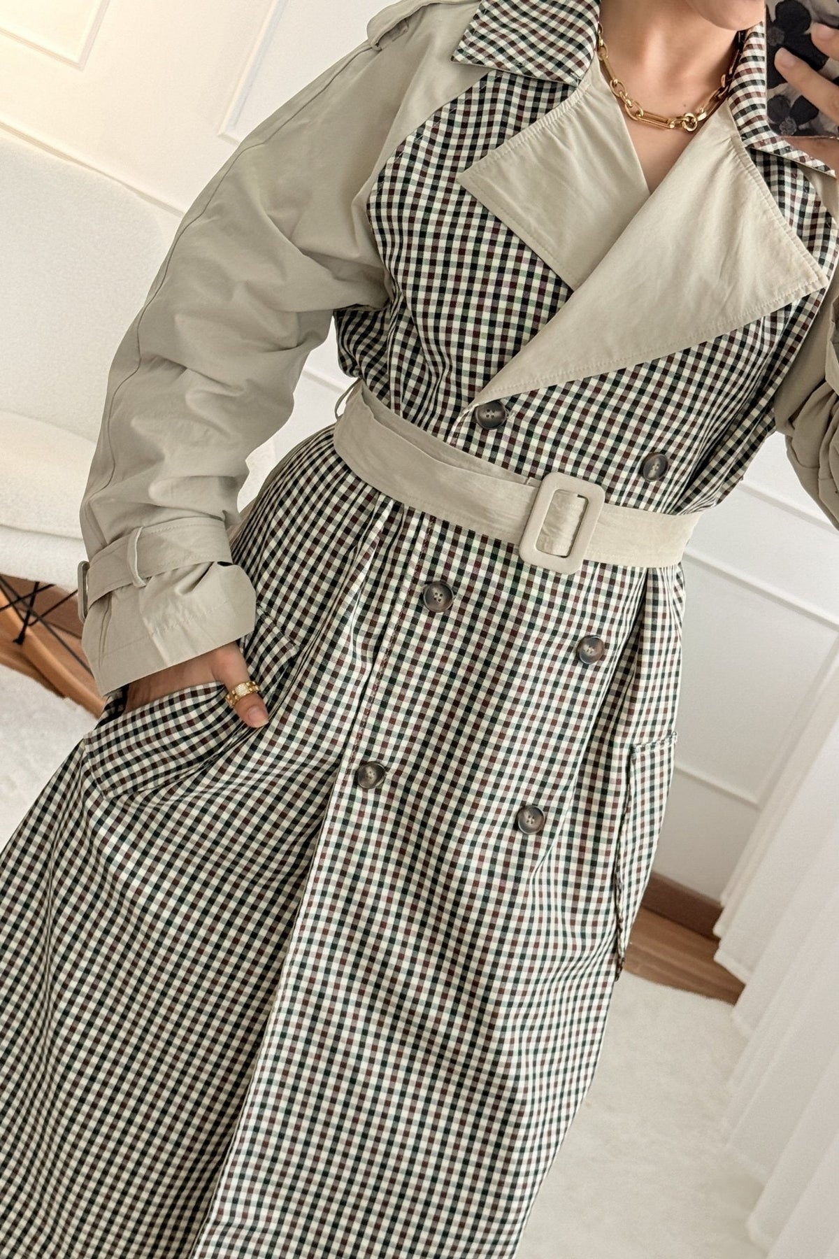 Károvaný trenčkot DROLE DE COPINE