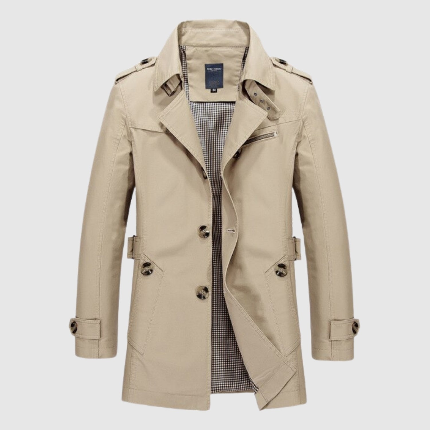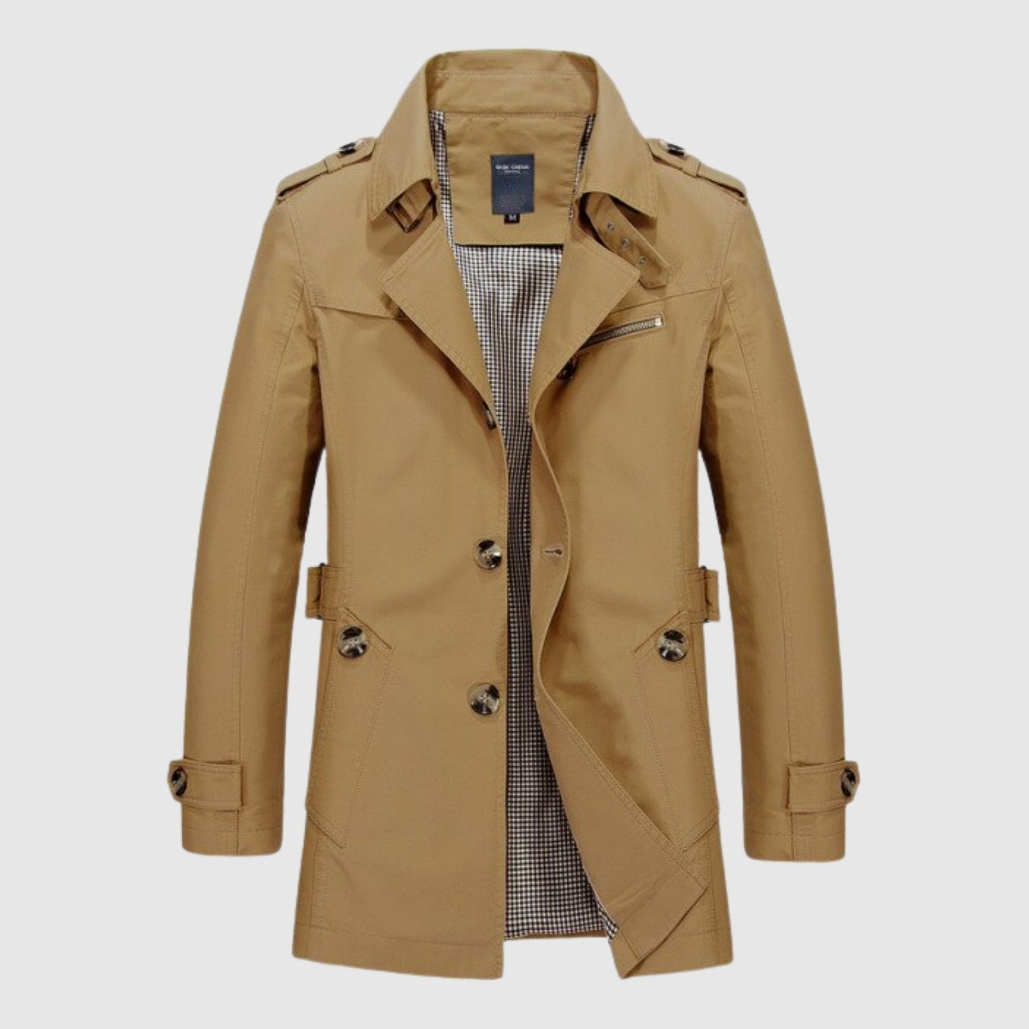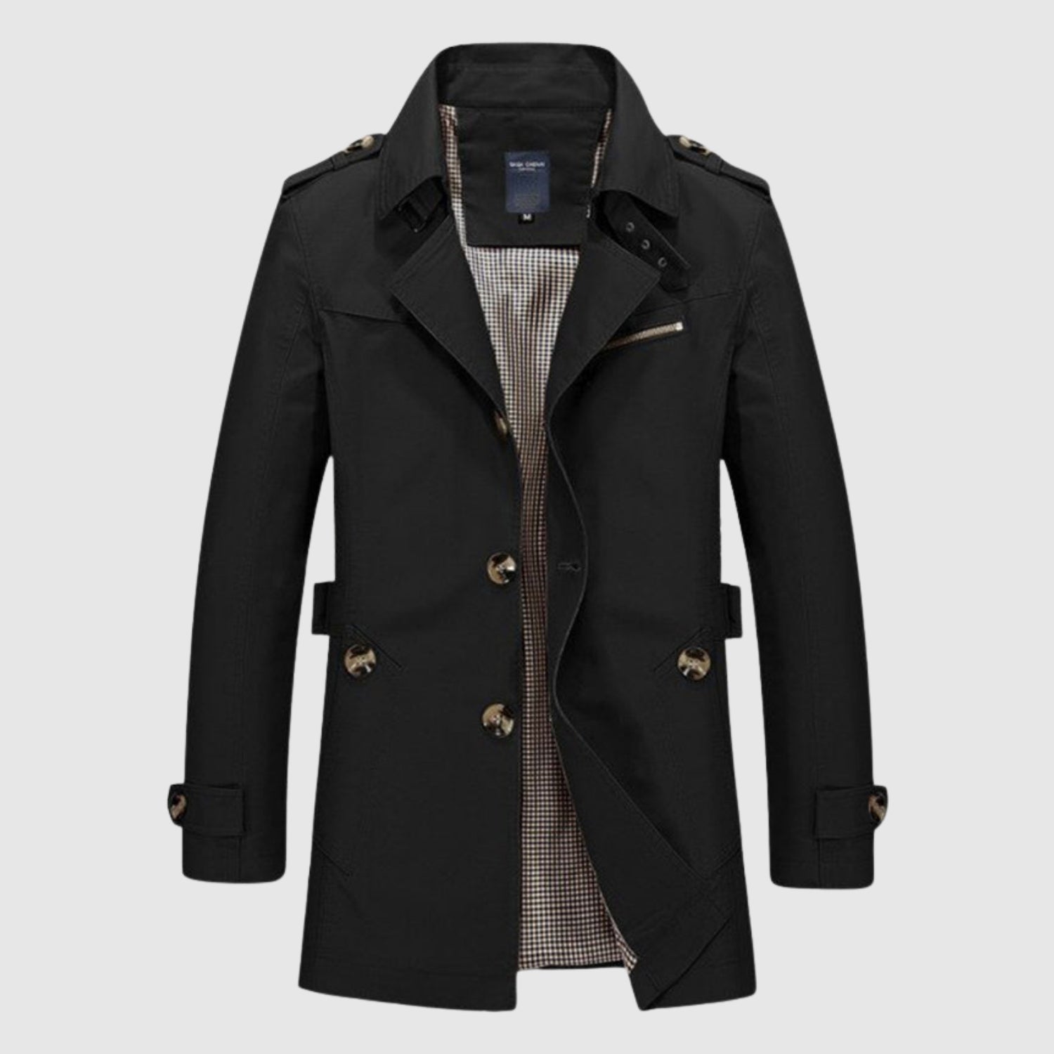Tento dlouhý kabát kombinuje sofistikovanost vintage designu s modern funkčností. Jeho strukturovaný střih zdůrazňuje mužskou siluetu, zatímco podšívka zaručuje pohodlí a teplo v chladnějších dnech. Ideální pro každou příležitost, od formálních setkání po procházky městem.