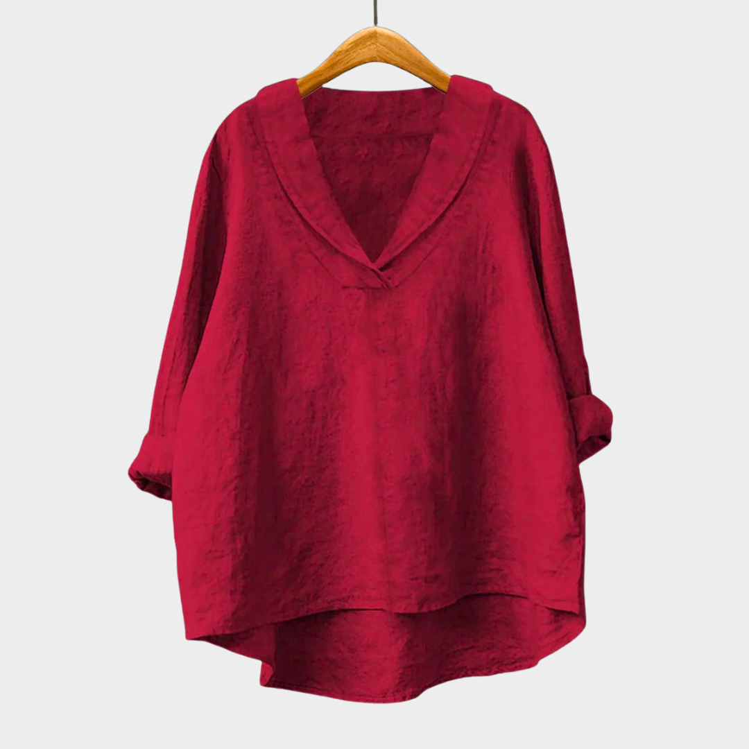 Rozlučte se s lepivými, tuhými a přiléhavými blůzami – tento kousek s volným střihem je navržen tak, aby vám umožnil dýchat, pohybovat se a zářit. Díky měkké bavlně a otevřenému límci přináší bez námahy eleganci při každém nošení. Od pomalých rán po vánoční večery je to vaše každodenní únik do pohodlí a tichého sebevědomí.