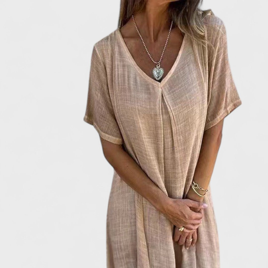 Kaya - Maxi šaty s výstřihem a balónovými rukávy